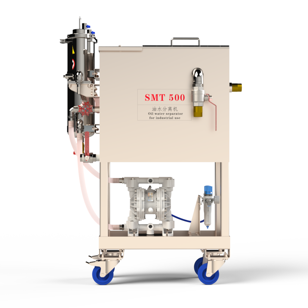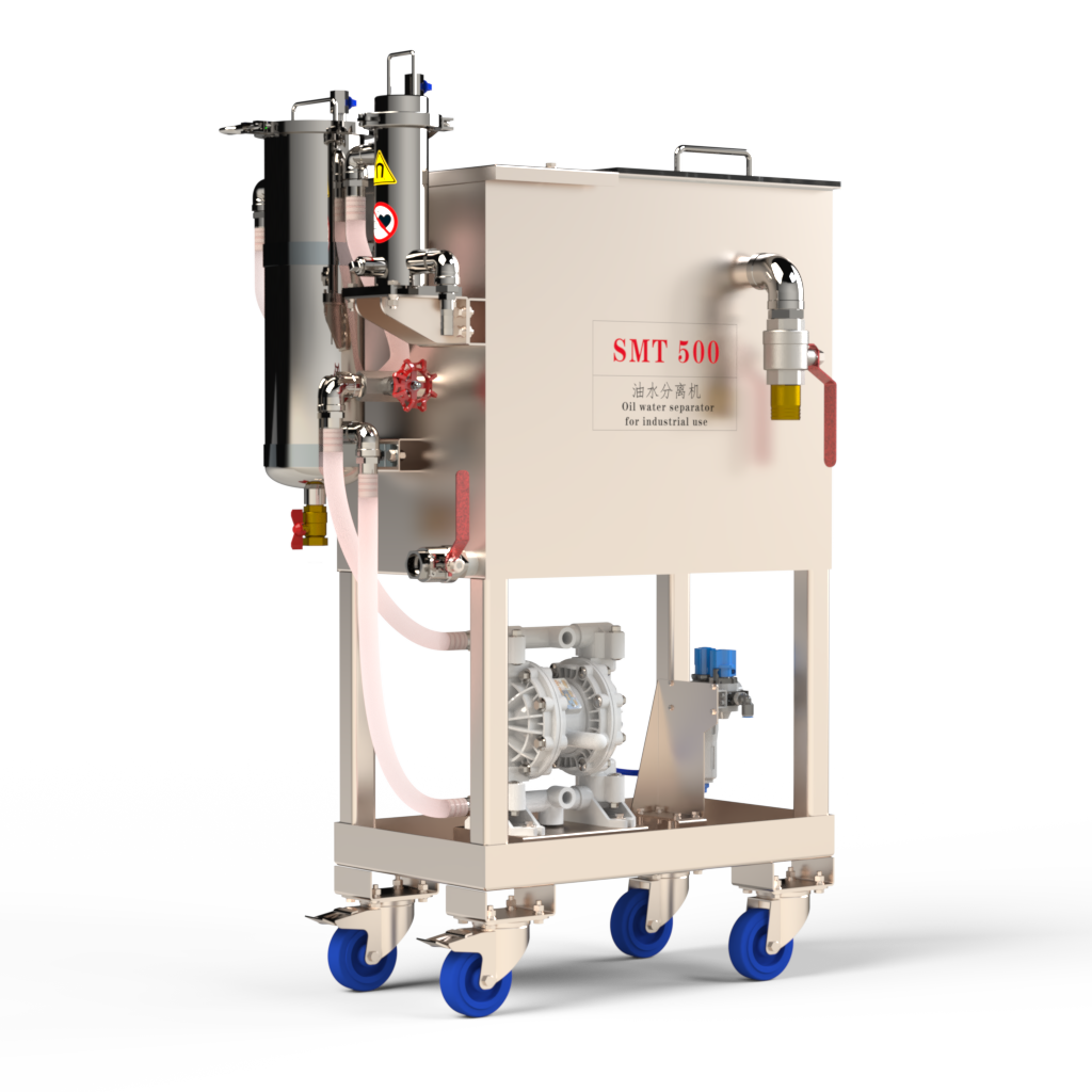 SMT 500V 油水分离机可有效去除工业用液(切削液 / 清洗液 / 磨削液)中的浮油与杂质,延长液体使用寿命,降低维护与更换成本。